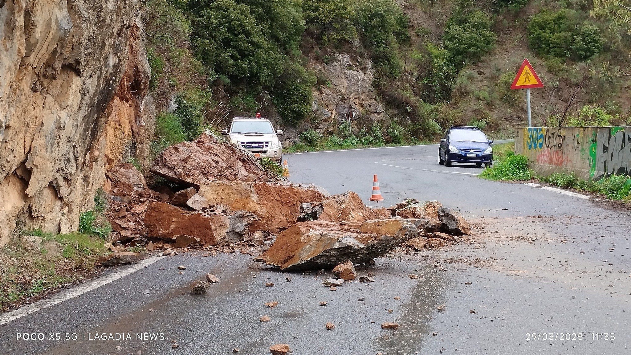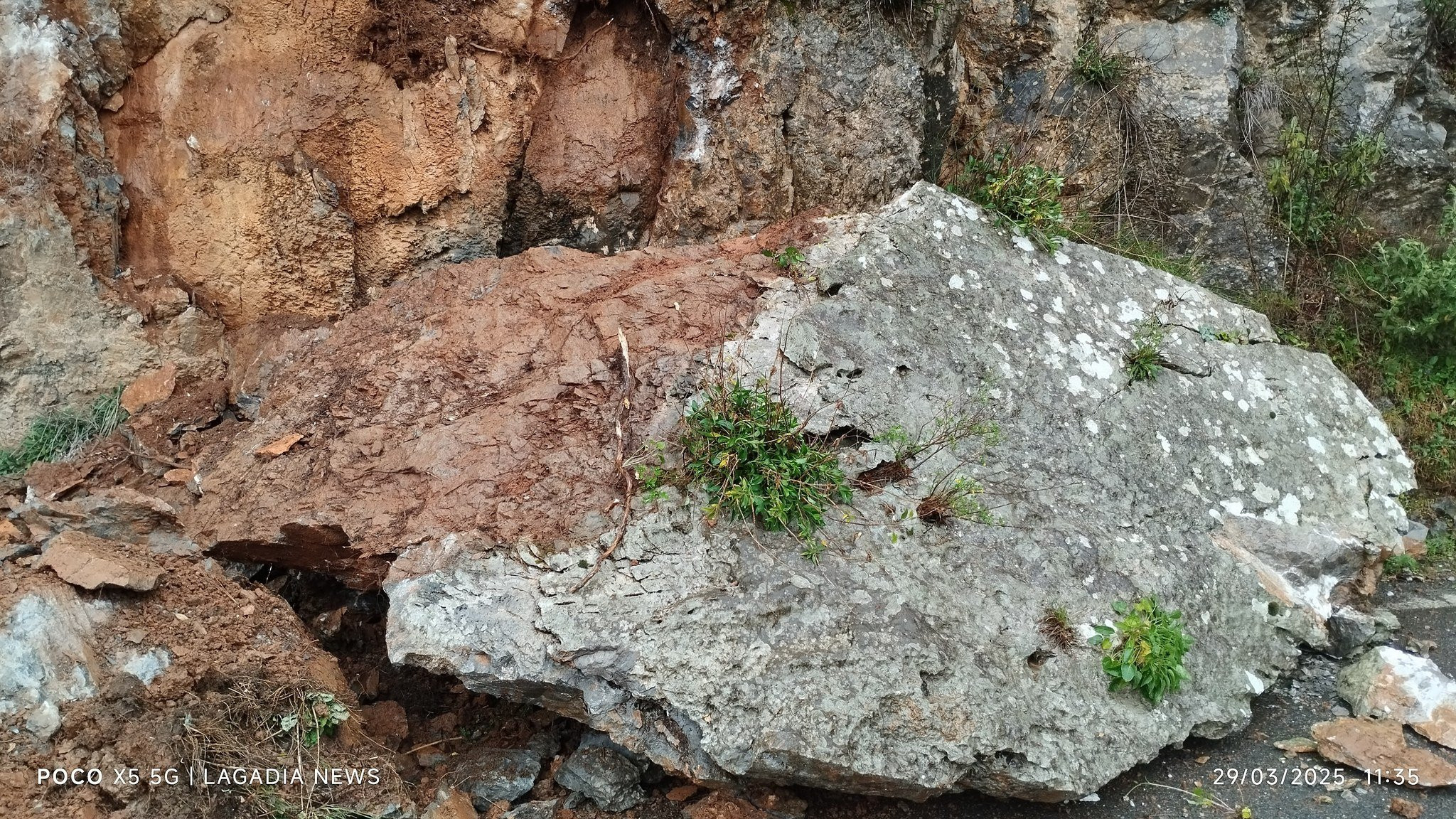 Πτώση μεγάλων βράχων στην ΕΟ Τρίπολης - Πύργου στα Λαγκάδια