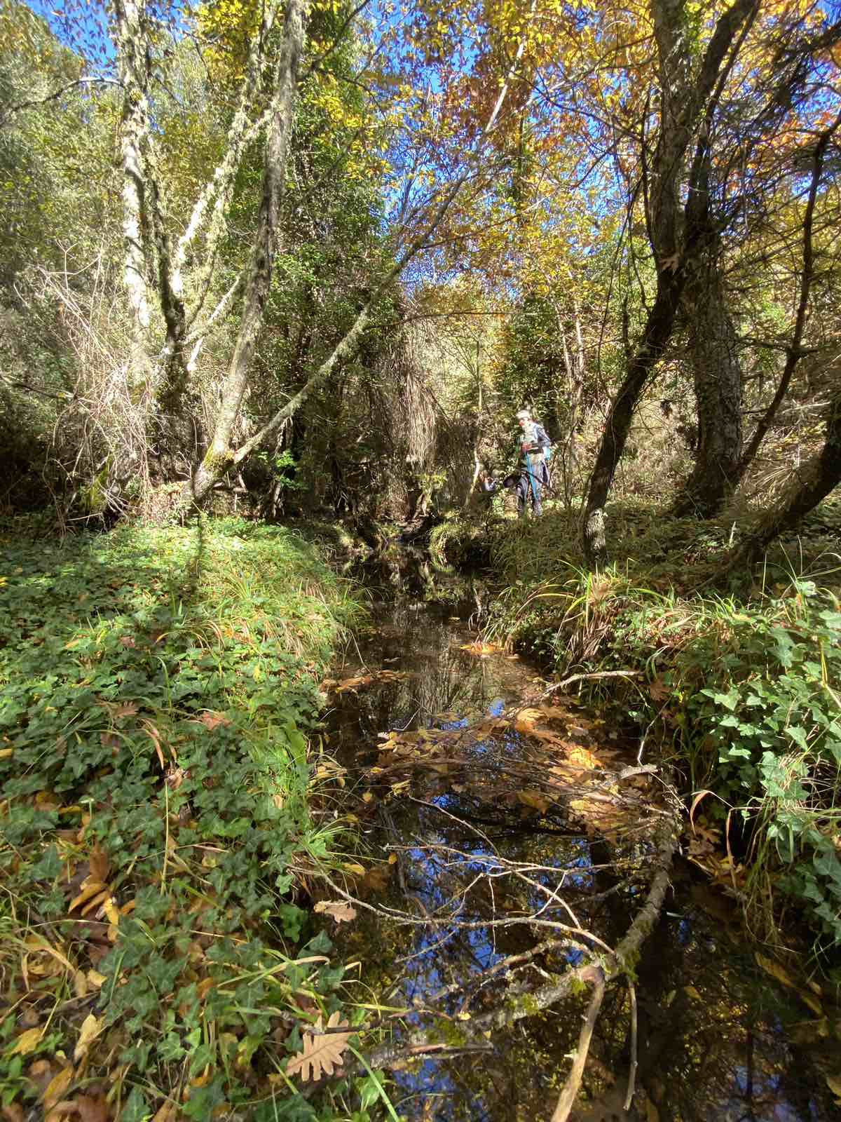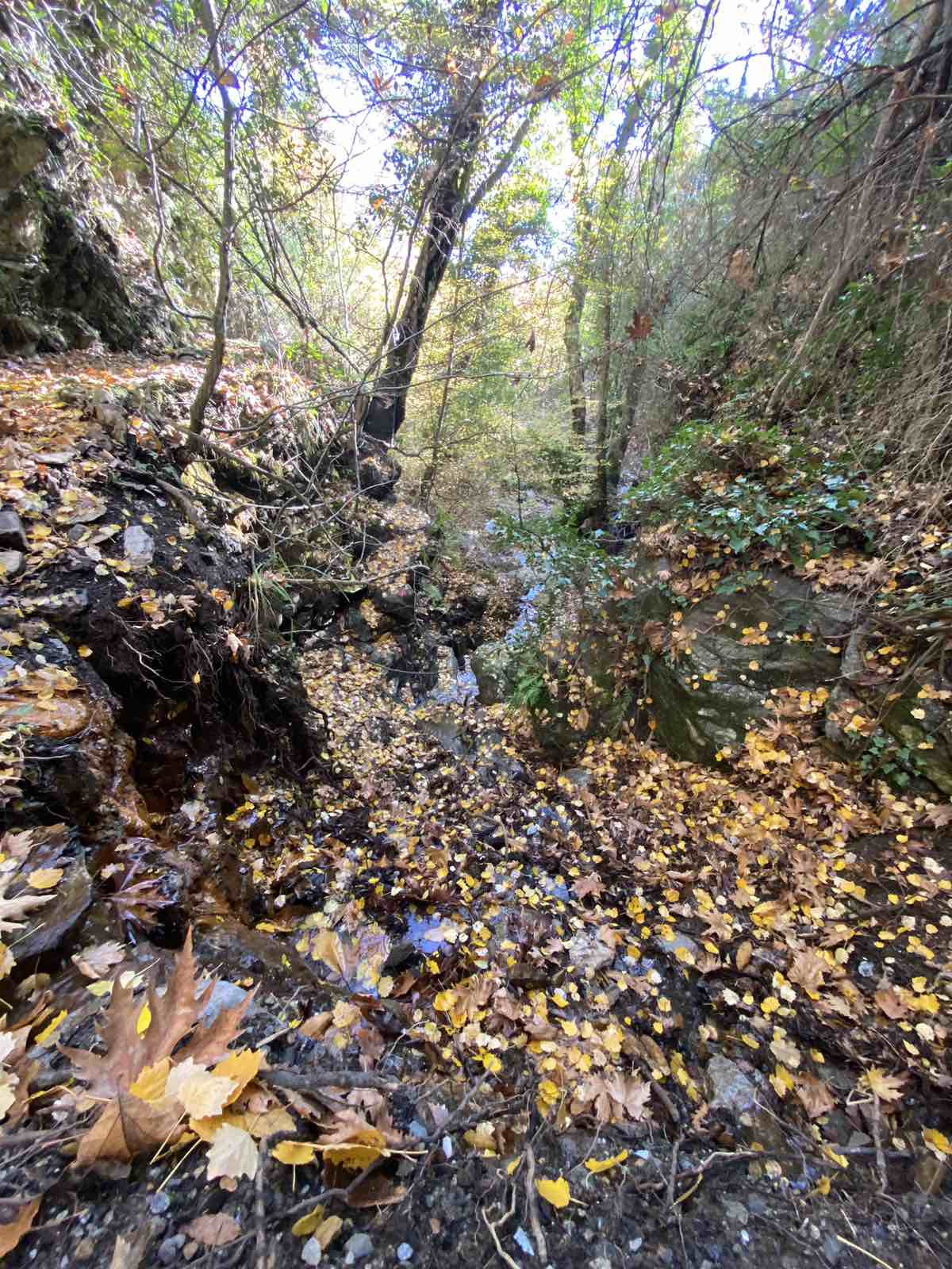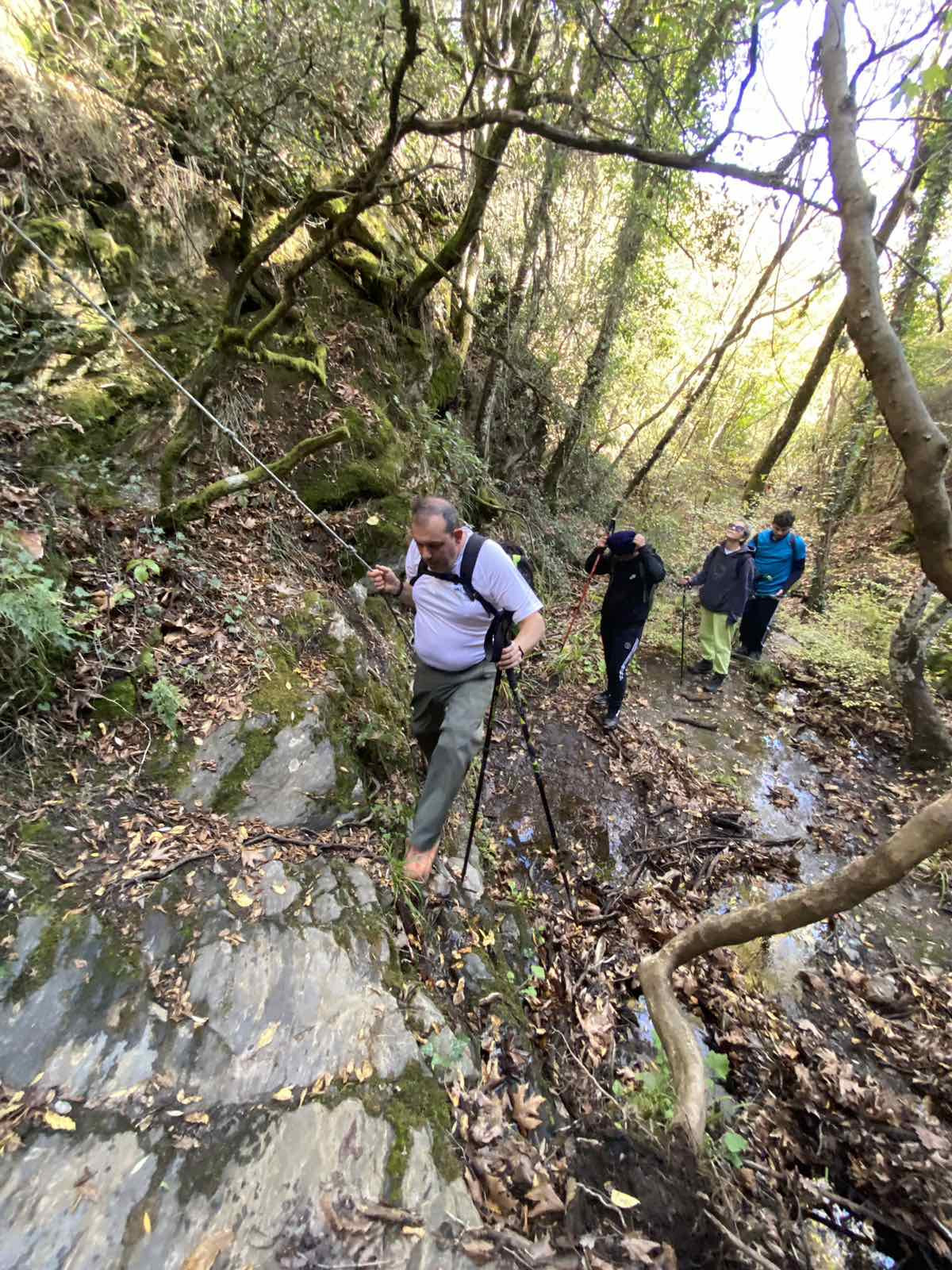 Τα πρώτα χιλιόμετρα έγιναν μέσα στο πανέμορφο δάσος της Σκιρίτιδας, περπατήσαμε ανάμεσα σε πυκνή βλάστηση, όπου συναντήσαμε αιωνόβιες καστανιές, καρυδιές και πεύκα που εναλλάσσονταν με πυκνά πλατάνια, βελανιδιές και έλατα.