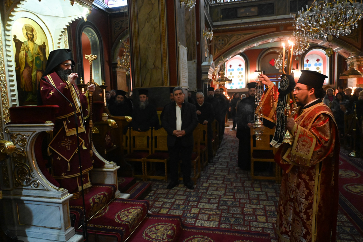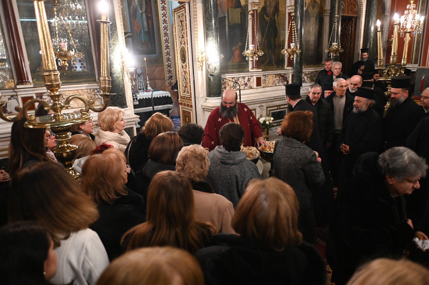 Πλήθος πιστών έφτασε στον ως άνω Ιερό Ναό για να συμμετάσχει στην Θεία Λειτουργία και να ευχηθεί στον εορτάζοντα Επίσκοπο.