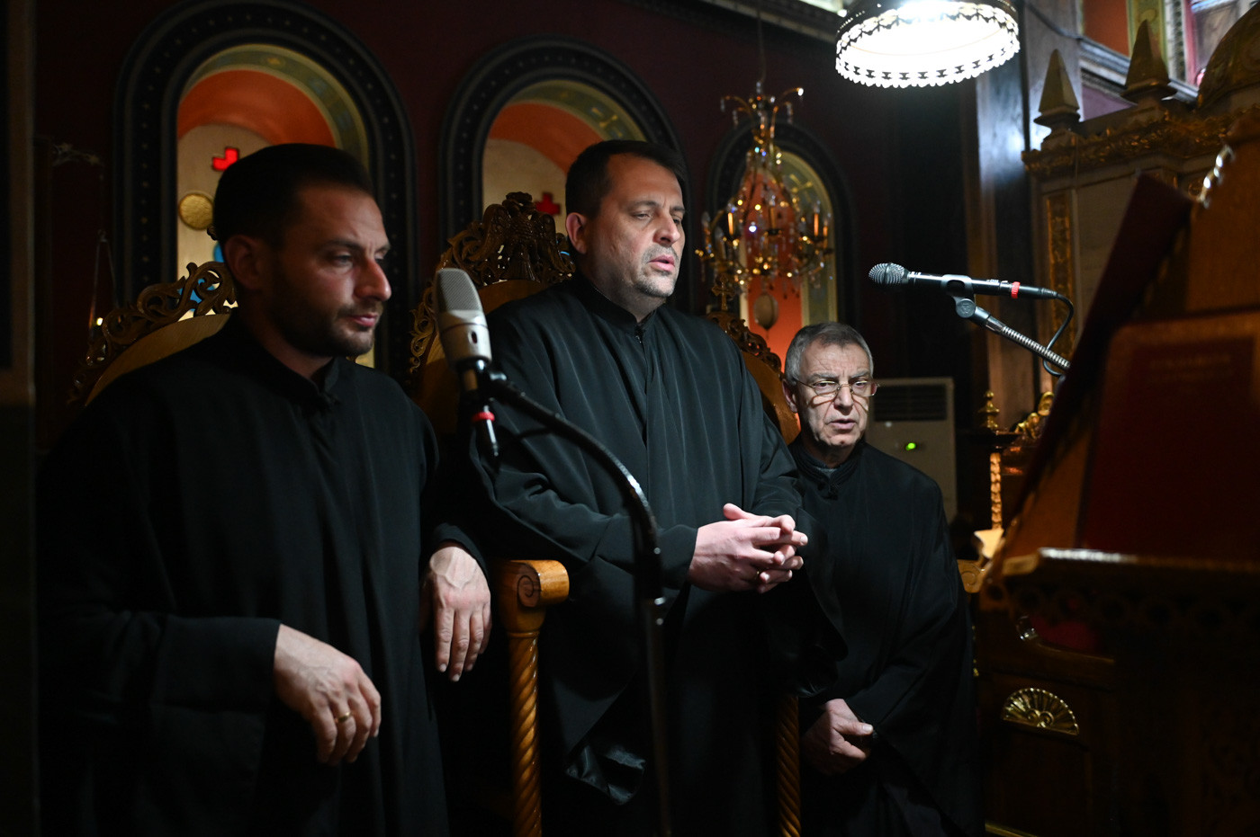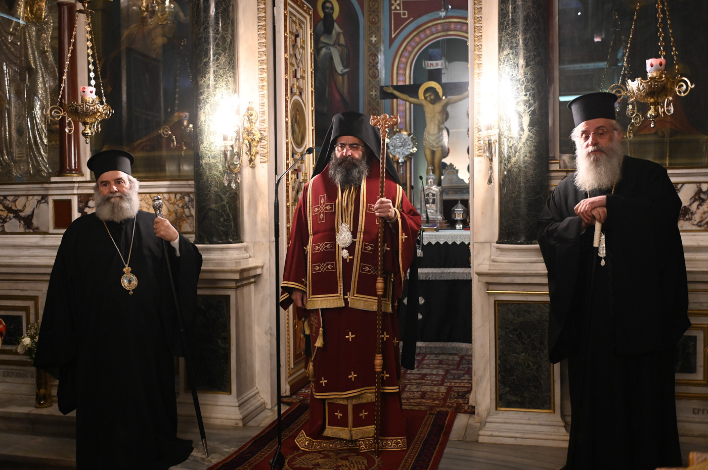 Την Προηγιασμένη Θεία Λειτουργία τέλεσε ο εορτάζων Θεοφιλ. Επίσκοπος Τεγέας κ. Θεόκλητος, συμπαραστατούμενος από τον Πρωτοσύγκελλο της Ιεράς Μητροπόλεως Πανοσιολ. Αρχιμ. Στέφανο Καππέ και τον Διάκονο π. Αλέξιο Ζαρζάνη.