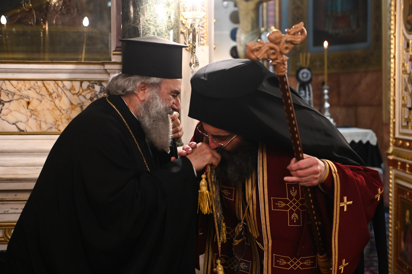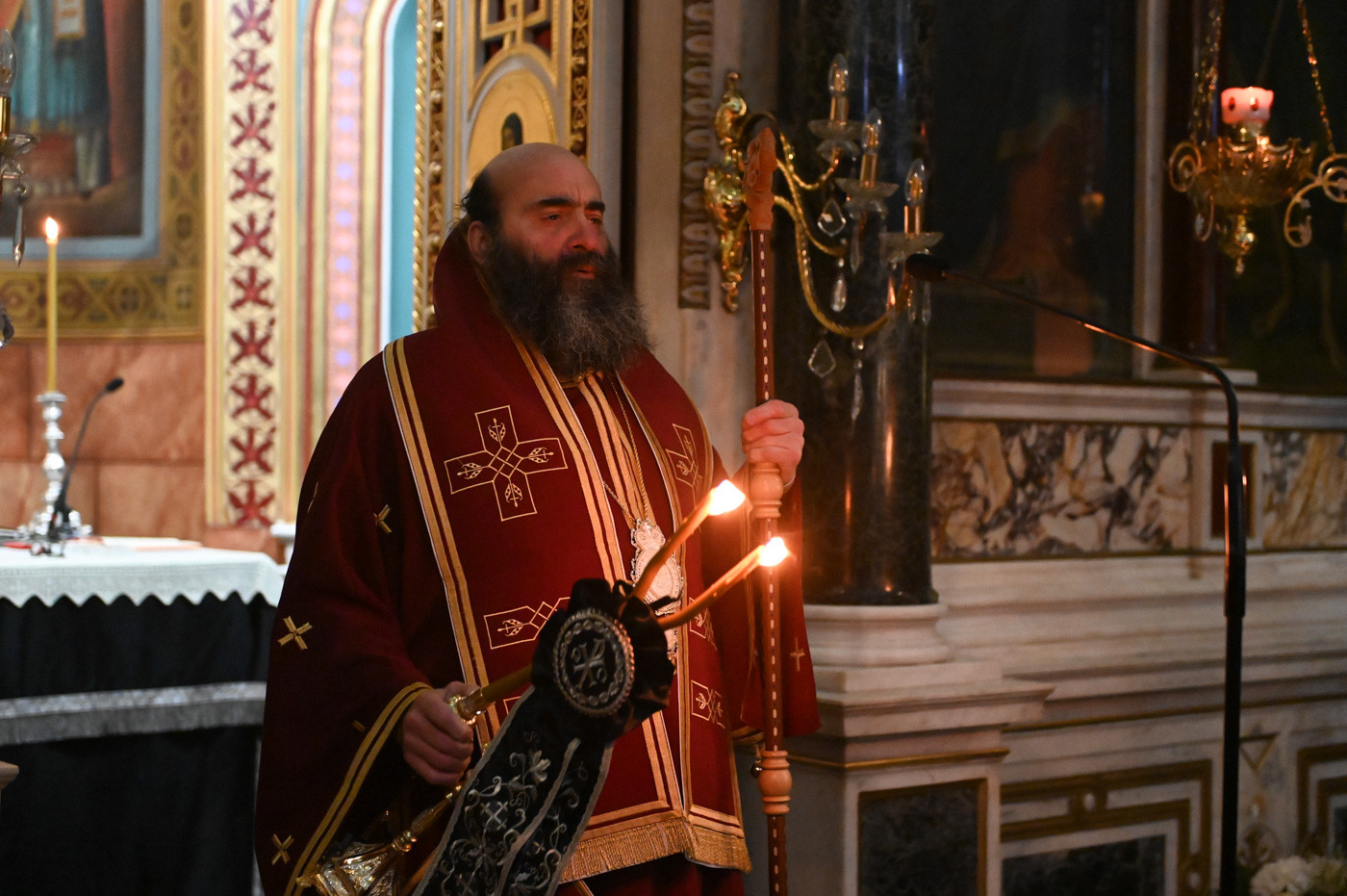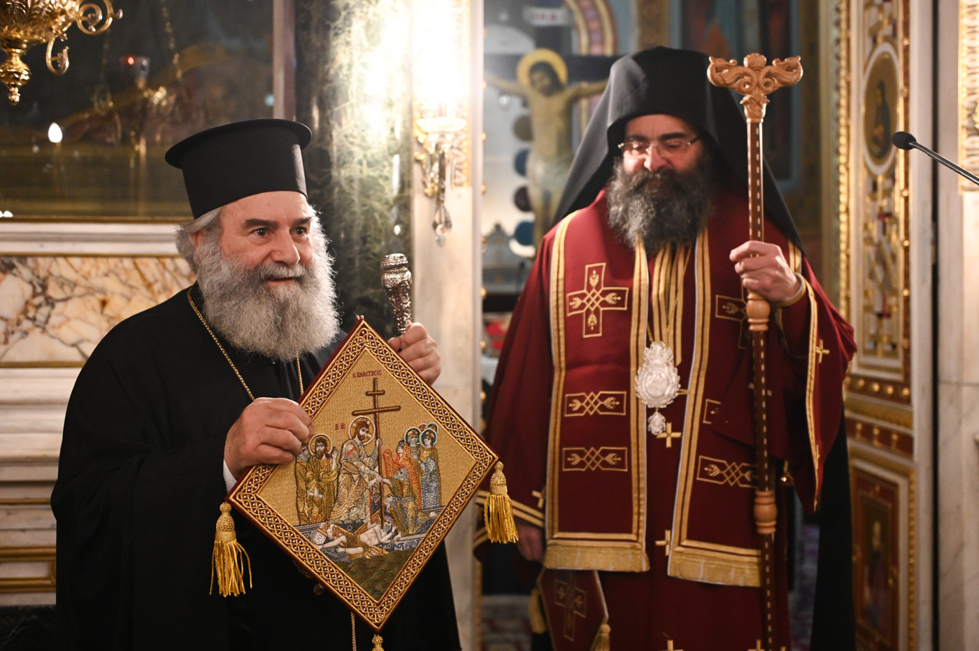 Με την σειρά του ο Μητροπολίτης Μάνης ευχήθηκε στον Επίσκοπο τα έτη του να είναι πολλά και του προσέφερε ένα επιγονάτιο με παράσταση της Αναστάσεως του Κυρίου.