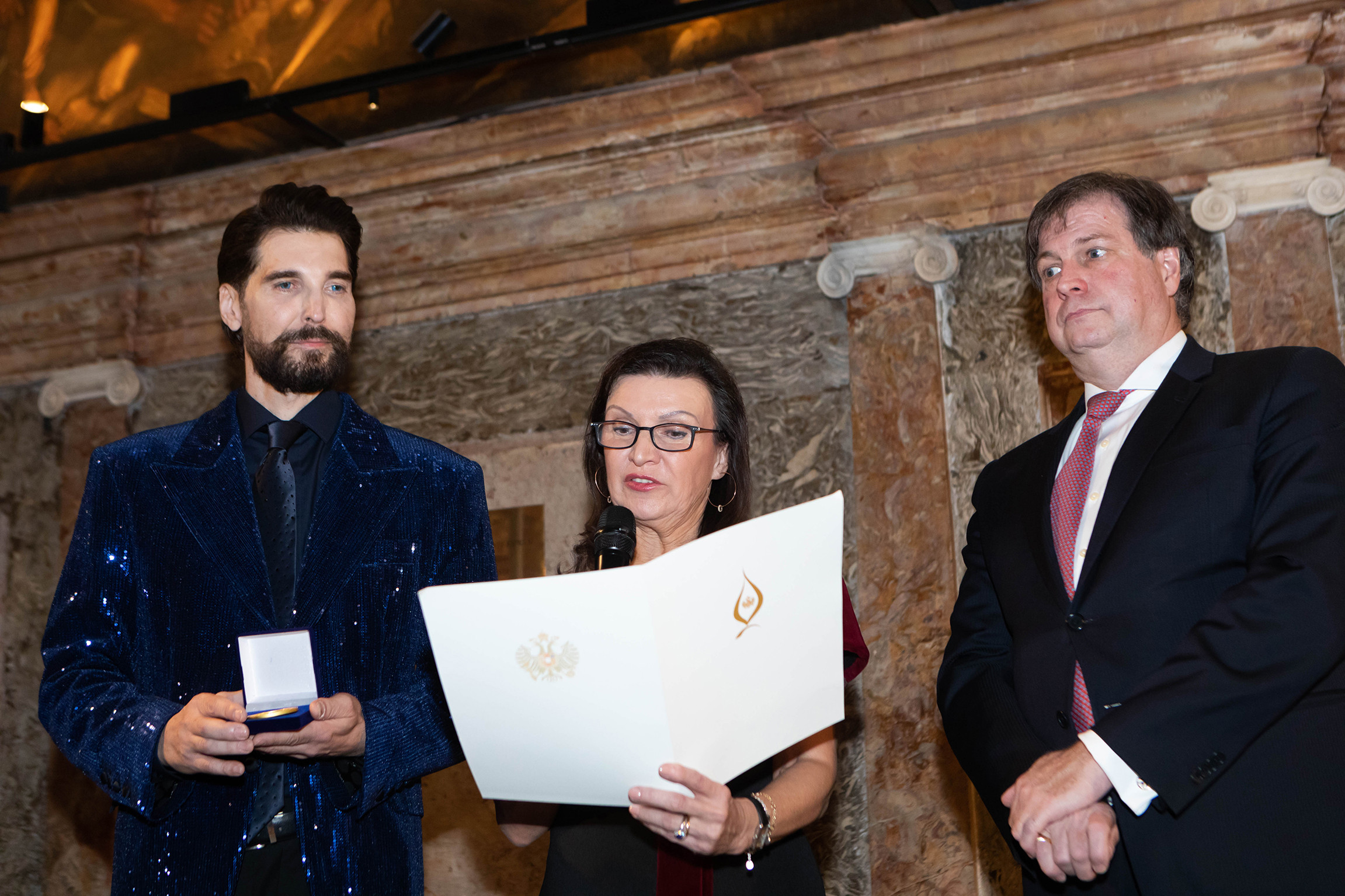 Η απονομή πραγματοποιήθηκε από το αυτοκρατορικό ζεύγος Σάντορ και Χέρτα Μαργκαρέτε των Αψβούργων, Αρχιδούκες της Αυστρίας και Πρίγκιπες της Τοσκάνης, σε ειδική τελετή στην εμβληματική μπαρόκ αίθουσα του Ateneo Veneto στην Βενετία που αναδείκνυε τη σημασία της Τέχνης και των Γραμμάτων.
