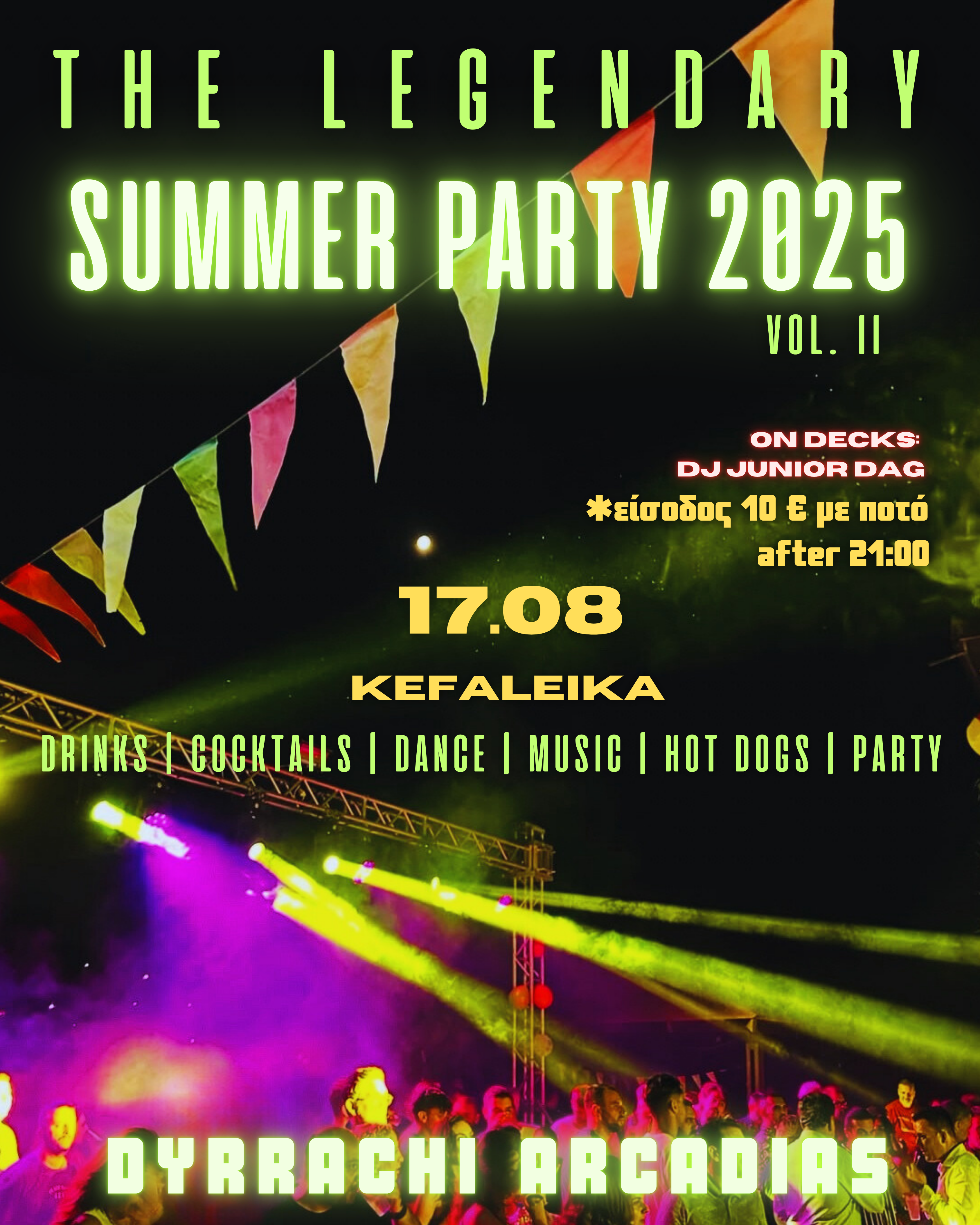 Με μεγάλη χαρά σας ενημερώνουμε ότι το THE LEGENDARY SUMMER PARTY επιστρέφει δυναμικά για δεύτερη χρονιά στο Δυρράχι Αρκαδίας!