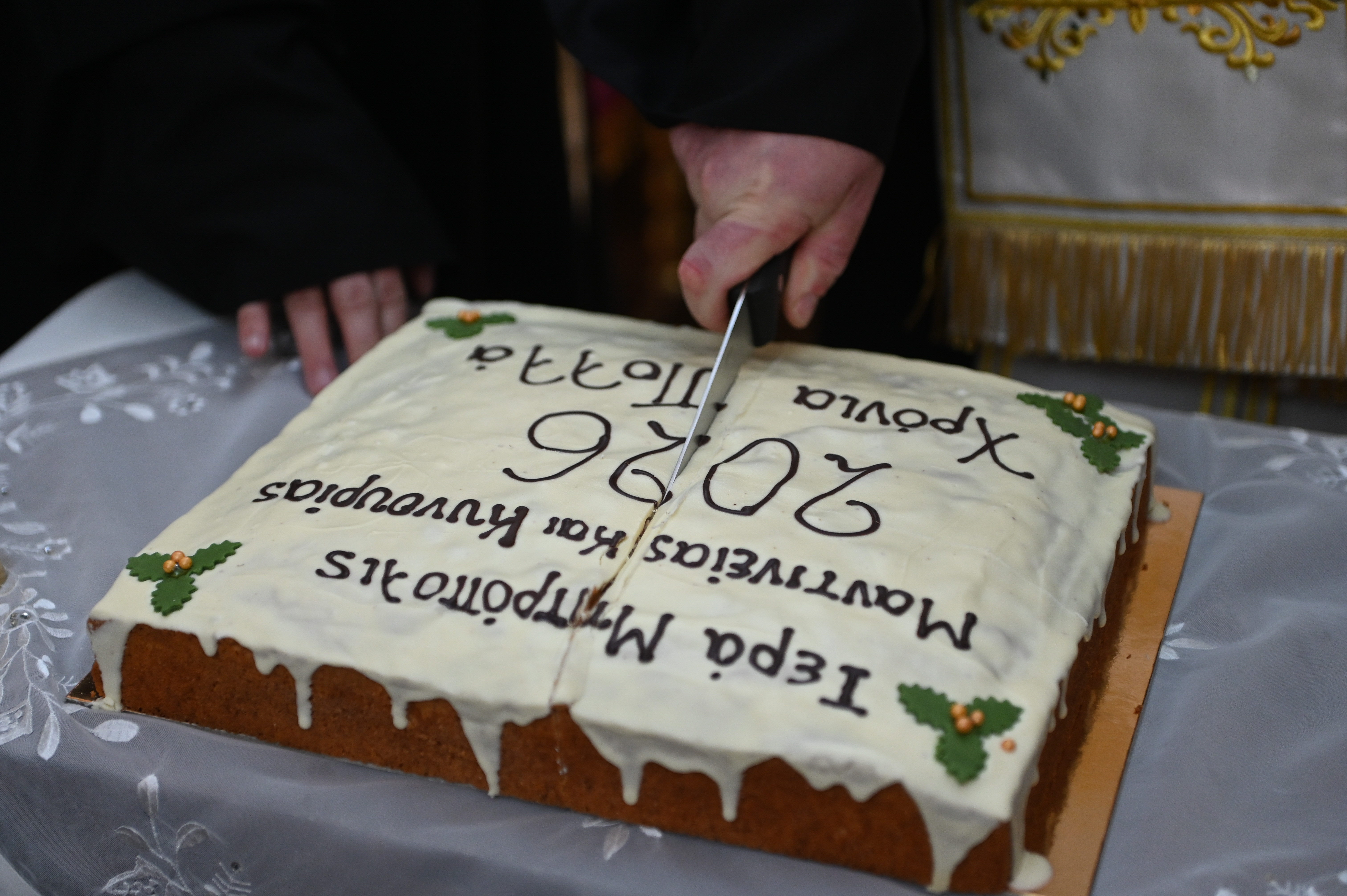 Εν συνεχεία, ο Μητροπολίτης ευλόγησε την Βασιλόπιτα του Δικηγορικού Συλλόγου Τρίπολης και ευχήθηκε στα μέλη του Συλλόγου υγεία για ένα καλό κι ευλογημένο έτος.