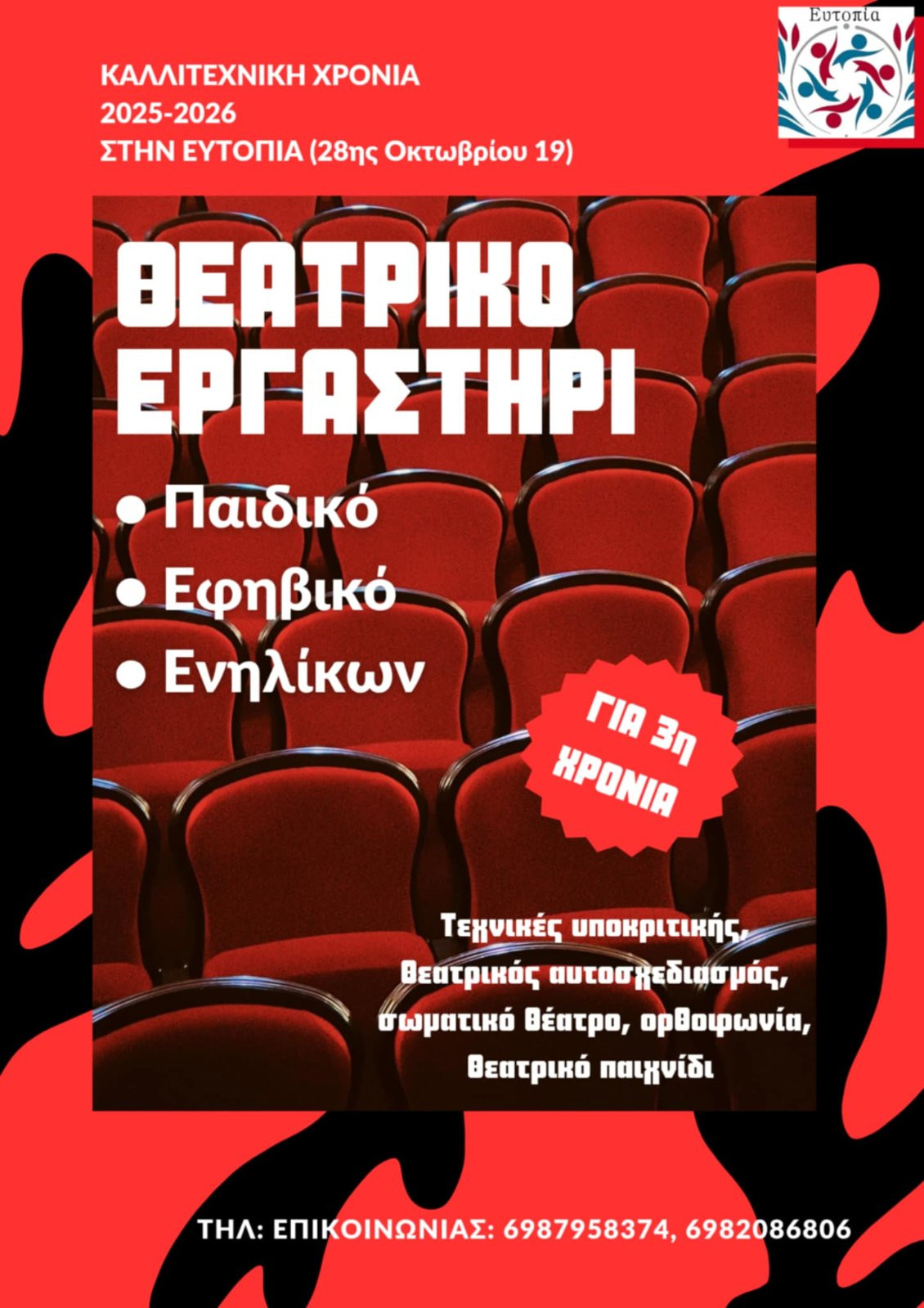 🎭Για πληροφορίες για τα θεατρικά Εργαστήρια επικοινωνία στα τηλέφωνα: 698 795 8374 & 698 208 6806