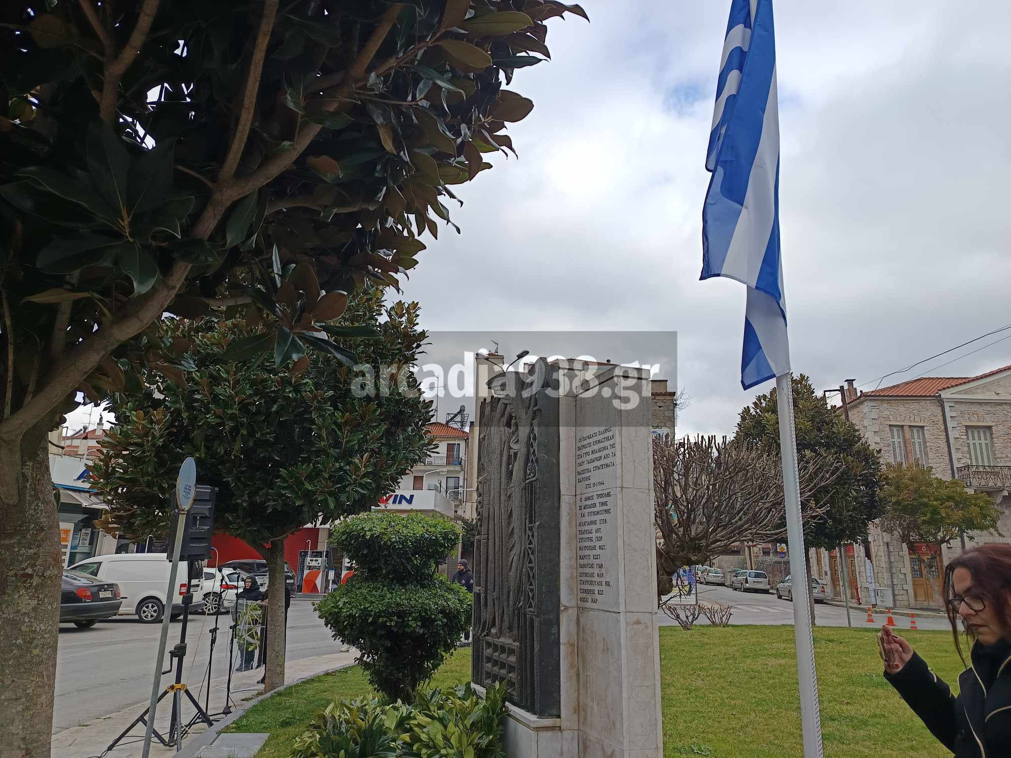 Εκεί, πέρα από το τρισάγιο που εψάλη, το "προσκλητήριο νεκρών" και την ανάκρουση του Εθνικού Ύμνου από τη Δημοτική Φιλαρμονική Τρίπολης, πραγματοποιήθηκε και κατάθεση στεφάνων από εκπροσώπους της πολιτικής ηγεσίας, των σωμάτων ασφαλείας, συλλόγων αποστράτων αξιωματικών, πολιτικών κομμάτων και, κυρίως, από συγγενείς των πατριωτών που πλήρωσαν με τη ζωή τους την αντιστασιακή τους δράση.