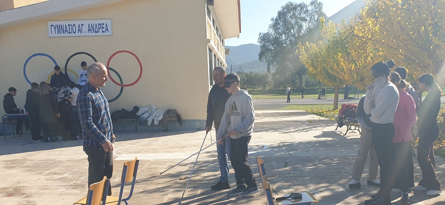 Tο Γυμνάσιο Άγιου Ανδρέα και η Συντονιστική Δομή Κοινωνικής Ένταξης της Γενικής Διεύθυνσης Δημόσιας Υγείας & Κοινωνικής Μέριμνας της Περιφέρειας Πελοποννήσου και συγκεκριμένα η Διαμεσολαβήτρια ΑμεΑ της Δομής, σε συνεργασία με τον Αθλητικό Σύλλογο Καλαμάτας «Διαφοροζώ», πραγματοποίησαν, χθες Πέμπτη 19 Δεκεμβρίου, βιωματική δράση ευαισθητοποίησης με θέμα την αποδοχή της αναπηρίας.